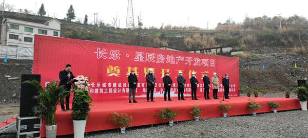 2021年1月26日上午,由开云登陆入口-开云online(中国)承建的长乐▪星辰住宅项目奠基暨开工仪式在项目现场热烈举行。湖北省宜昌市五峰土家族自治县住房和城乡建设局副局长陈白华、县质量安全监督站站长邓简涛、开云登陆入口-开云online(中国)五峰长乐▪星辰项目经理王国云,项目参建各方及新闻媒体共40余人出席。宜昌市长乐城市建设投资开发有限责任公司总经理刘鹏主持。